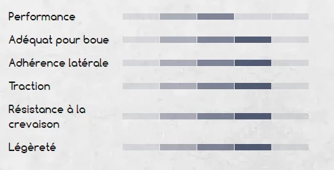 - Des pavés sculptés pour assurer grip et rendement sur tous les terrains.