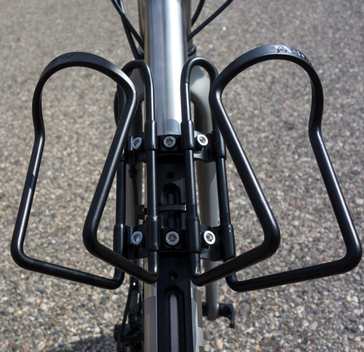 L’adaptateur pour double bouteille fait partie du système B-RAD ™ qui vous permet d’installer 2 cages à bouteilles côte à côte.